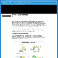 These are therapeutic exercises that strengthen your body and help prevent a recurrence http://www.spineuniverse.com/article/backpain physicaltherapytreatments3912.html Microsoft Word - VOLUME 3 - Aquatic and Back Pain ... Doc Retrieval